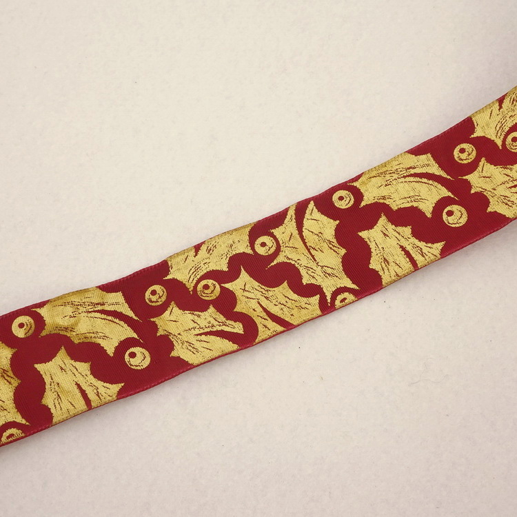 Christmas Wired Ribbon With Gold Metallic Holly-