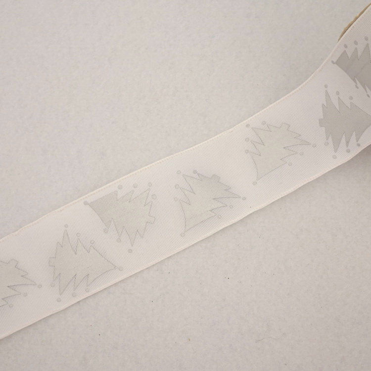 Christmas Wired Ribbon With Gold Metallic Trees-