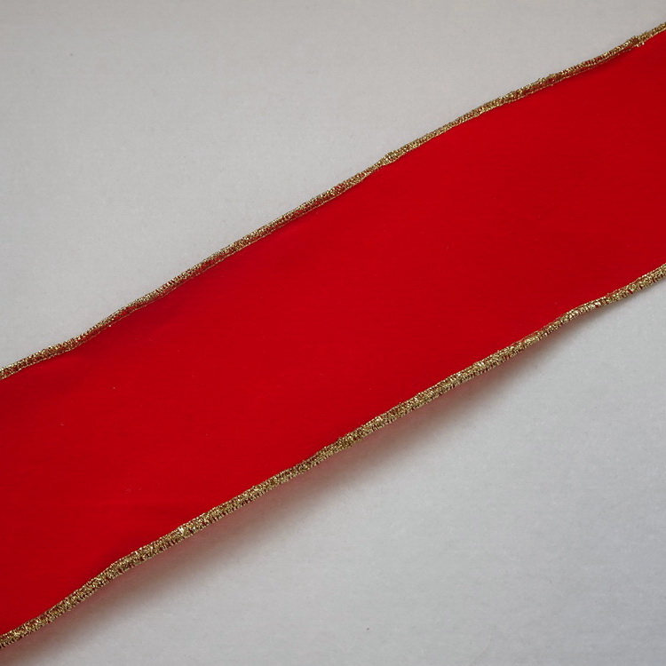 Wire Edged Velvet Craft Ribbon - 45mm /65mm - Red With Gold Metallic Edge