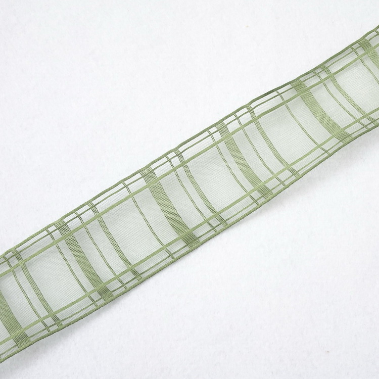 Wired Chiffon Check Ribbon- 25mm/40mm- Green