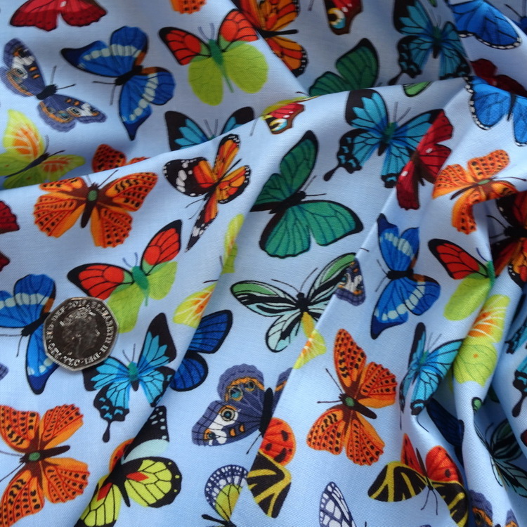 NEW IN STORE. To add to our collection of John Louden fabrics are Bright Fluttering Butterflies. They are printed on a new soft touch 100% cotton which has a good weight of approx 150gsm. They are gorgeous and bright to look at in delightful colourways. There is green with bright multi coloured butterflies and sky blue with multi coloured butterflies. These are ideal for dressmaking, home decor, bunting, and lots of craft projects. They are so lovely you will feel you want to buy them even if you don't know what you need them for at the moment!
