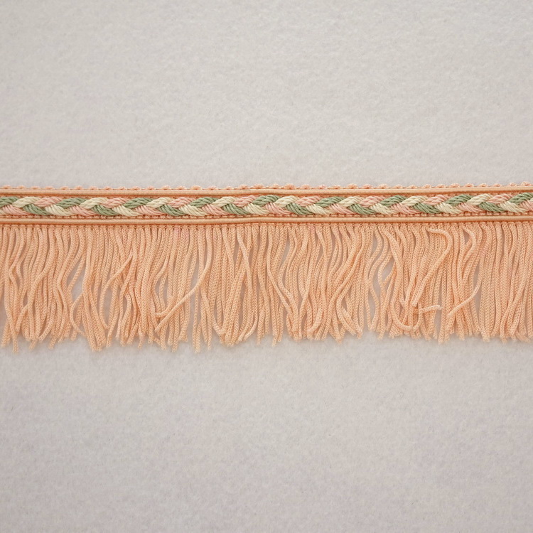 Silky Fringe- 40mm- Peach With Peach & Green Braid