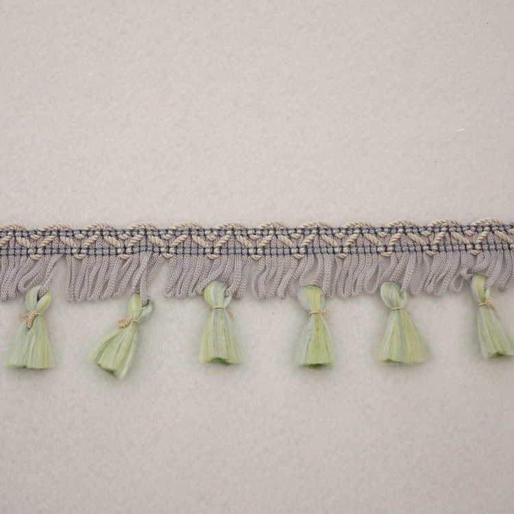 Silky Looped Tassel Fringe- 55mm- Grey & Green Mix