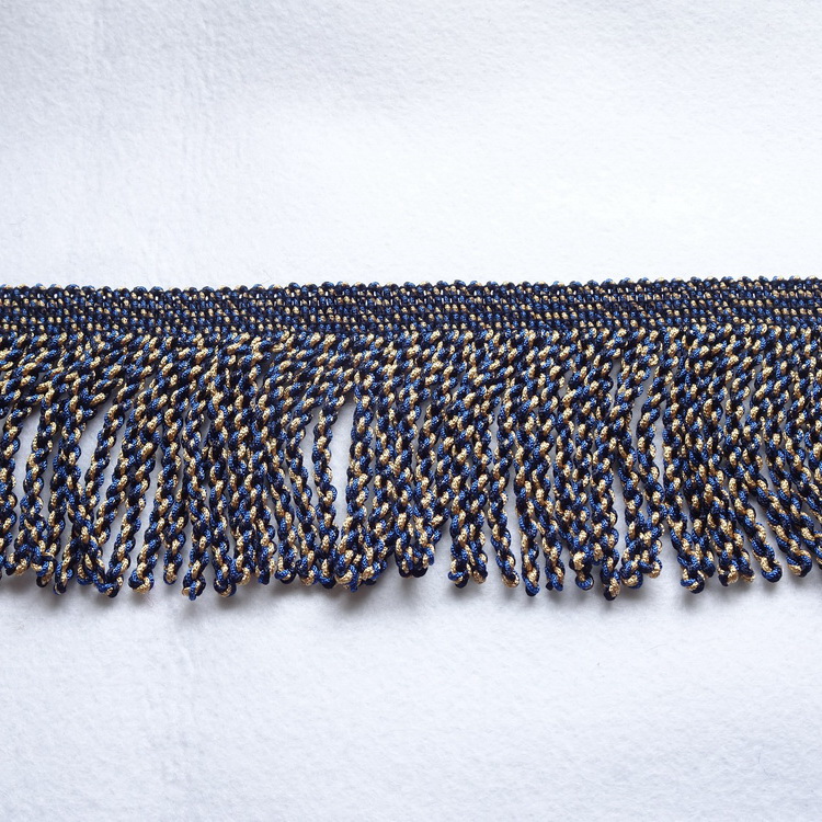 Thick Bullion Fringe- Finsbury- 90mm- Navy & Gold Mix