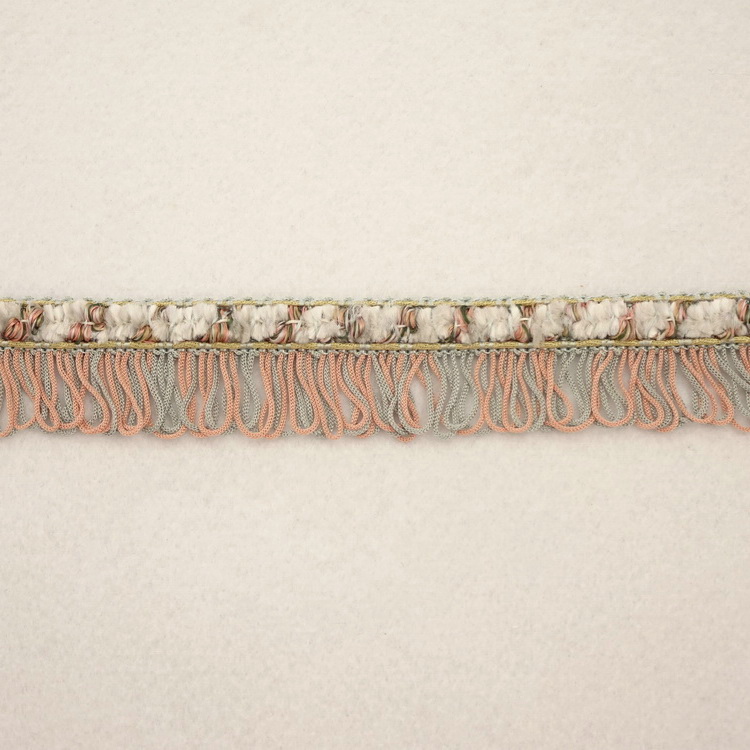 Silky Looped Fringe & Velvet Braid- 30mm- Grey & Pink